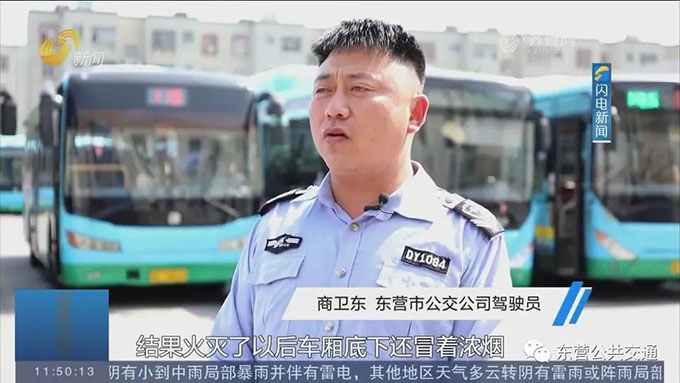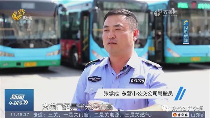 近日在東營,一輛正常行駛的車突然起火,而且是在車流量很大的道路中央。在等紅綠燈的東營公交駕駛員張學成和商衛(wèi)東看到這一情況后,紛紛拿起車上的滅火器參與救援。