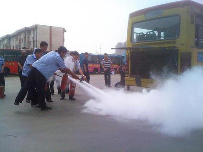 演練前,車隊領導景洪培同志首先講解了公交車發生火災的幾種情況和特點、遭遇突發火災時應對的措施、步驟以及應重點注意的事項,救火時應先做什么,后做什么,應該怎么做,需要提醒乘客什么,必要時讓乘客提供什么樣的幫助等一系列的問題。并再三強調要求駕駛員做好日常兩檢(出車前、收車后)和例查(油電路、滅火器、安全錘),把消防工作重點放在預防上。萬一突遇車輛火災,應把保護乘客生命安全,及時沉著冷靜疏導乘客放到第一位,然后再迅速進行滅火,報警,通知車隊等工作。最后,所有參加演練的人員模擬進行了車輛著火后,駕駛員如何停車、開車門、疏導乘客下車,斷電源、正確使用滅火器滅火等一系列的實際操作演練,直到參與的駕駛員都能熟練掌握突遇車輛火災時的搶險程序。