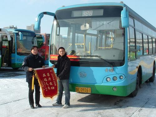 王樹懷的父親王科全老人和老伴都是勝利發(fā)電廠的退休職工,老家在東營村。閑暇之時,二老經常乘坐126路外出遛彎或購物,他們對126路駕駛員們的服務態(tài)度非常滿意,尤其是對魯E9261號駕駛員田惠霞的服務態(tài)度更是贊不絕口。由于二老行動不便,有時還帶著孩子,田惠霞每次遇到二老乘車,都是拉好手剎起身下車攙扶二老上車,上車后遇到沒有座位的時候主動用話筒幫助二老安排座位,田惠霞的真情服務感動著二老,便委托兒子王樹懷先生給田惠霞送來了錦旗,聊表心意!