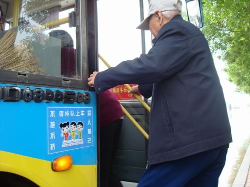 市公交公司8路車組工作人員制作溫馨提示圖片,張貼在上車門旁,倡導乘客互相禮讓、排隊上車,自覺維護乘車秩序,共建和諧文明乘車環境。