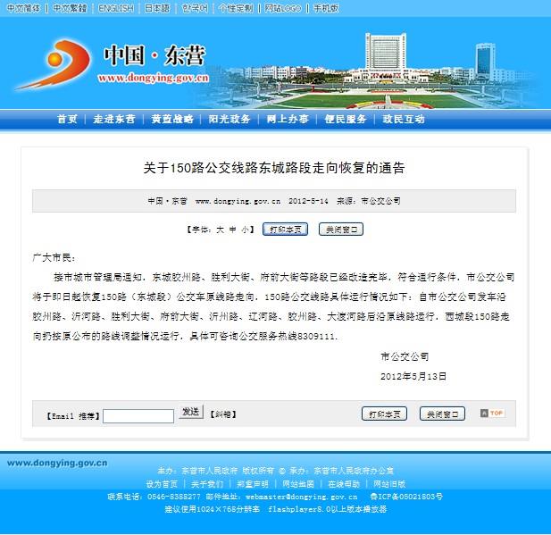 2012年5月15日東營市政府網站報道